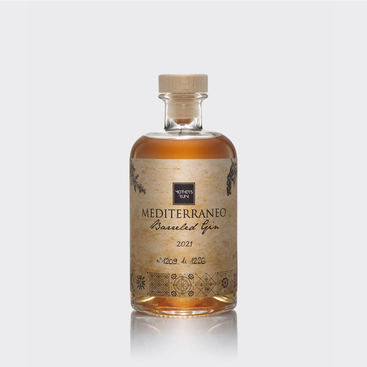 Mother's Ruin Mediterraneo Barreled es un producto que nace del encuentro de Mediterraneo london dry gin con las fantásticas barricas de Baracchi Winery en Cortona, dejadas reposar durante 100 días, y disponible solo en lotes muy pequeños en botellas numeradas a mano y envasadas en sus bolso exclusivo.